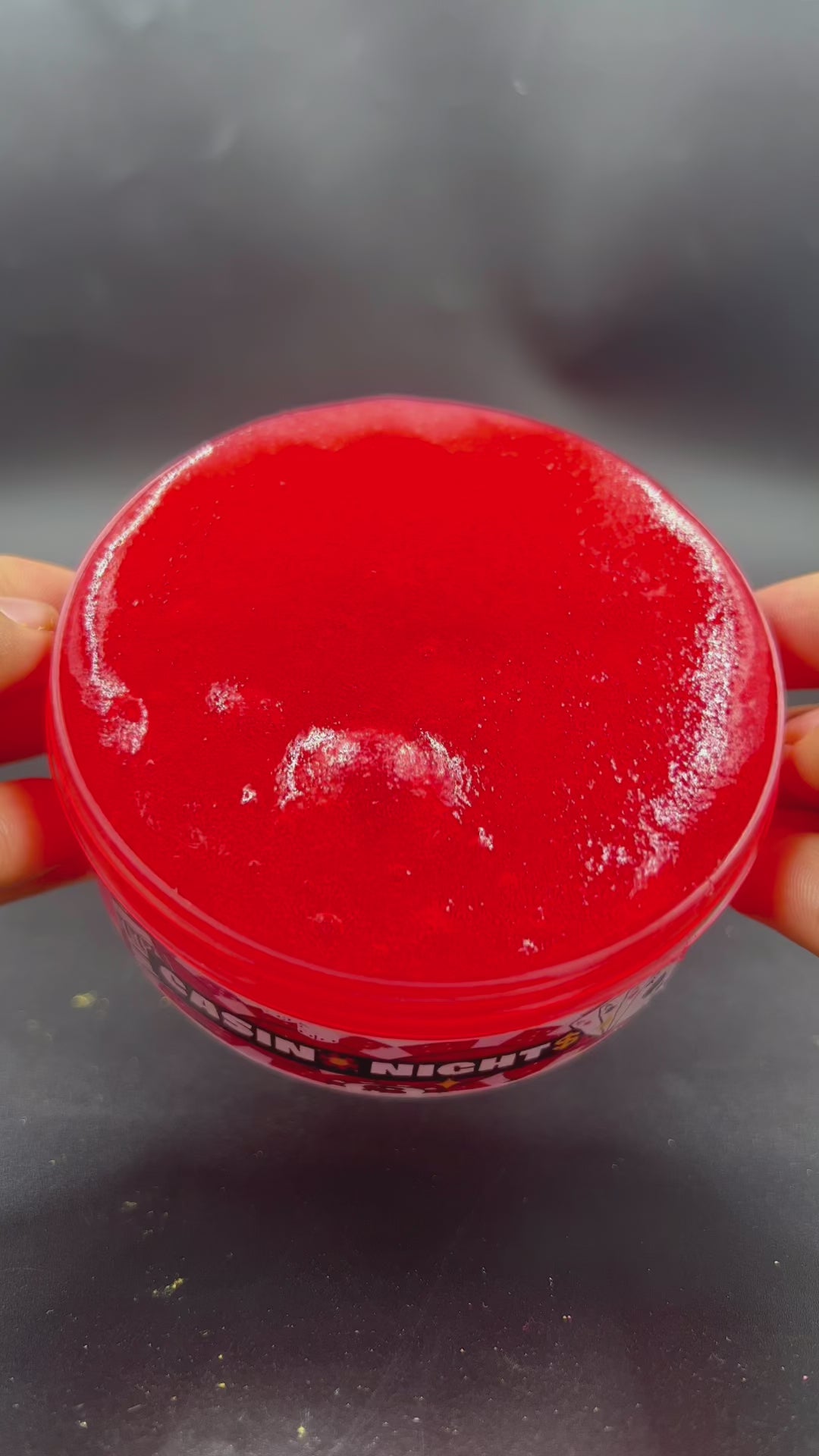 A gorgeous clear red jelly juicy base scented a yummy Hawaiiwan tropical scent. Topped off with 3 clay cards, a random suit ( heart, diamond, spade or club) , and a gold metallic add on! Super bubbly and clicky. Great for bubble pops!
