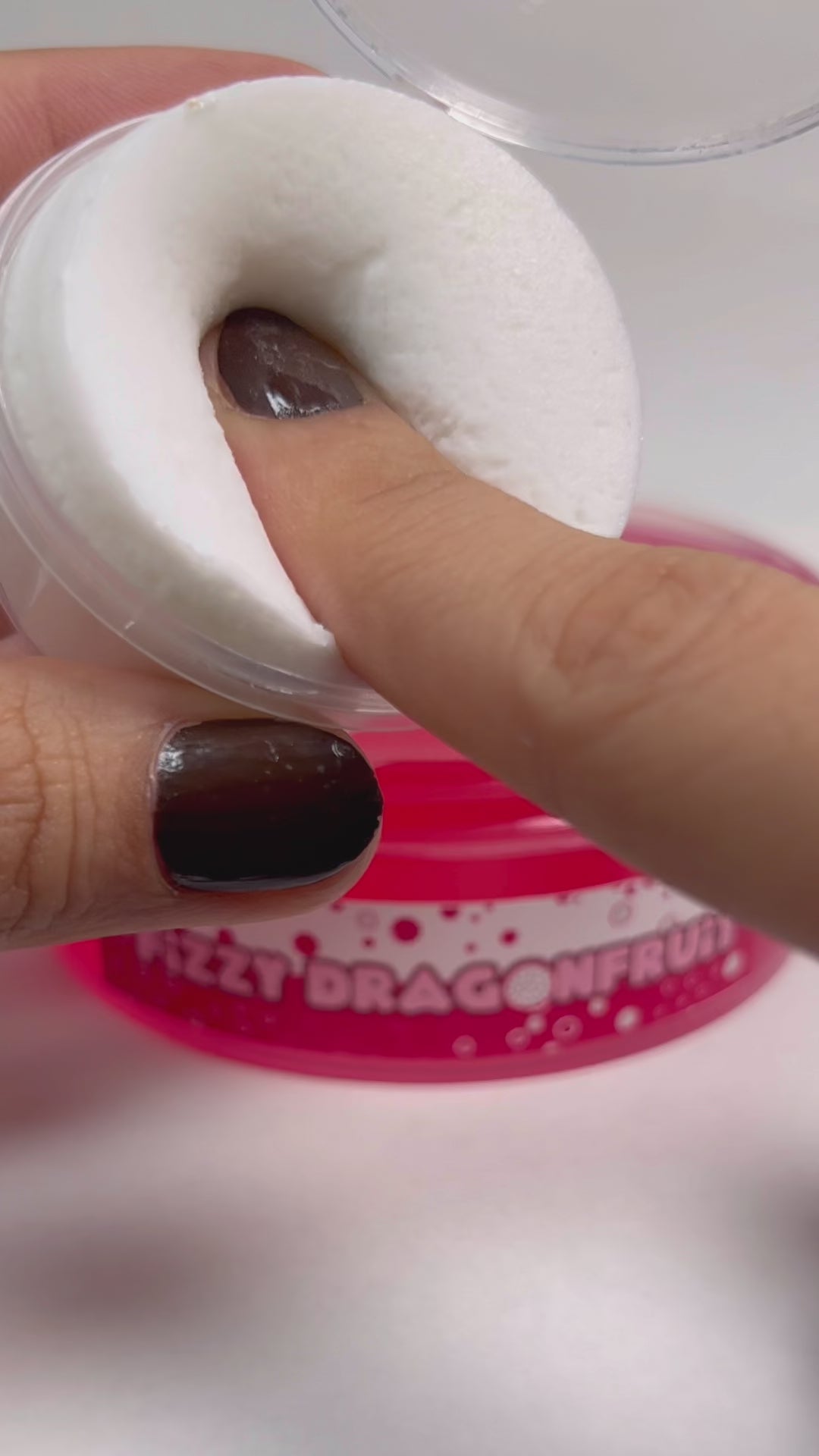 Fizzy Dragonfruit is a delicious way to refresh you this start of 2024! With a crystal clear dragonfruit scented magenta base topped with a creamy, ‘foam’ cloud creme topped- once mixed it turns into a clicky, stretchy & thick slime that is great for pokes and bubble pops!