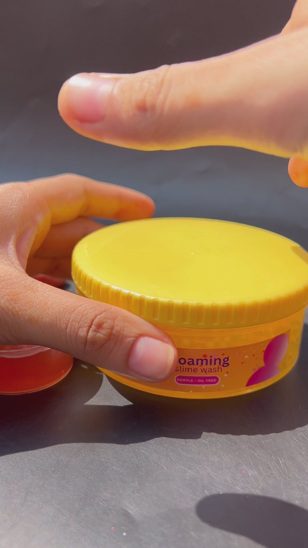 All new Slime Clear Wash! A gorgeous jelly slime that comes with yellow foam balls and a peach scented ‘facewash’ add-on that looks exactly like a face wash! This slime is extremely inflatable, juicy and makes the best sizzles & bubble pops.